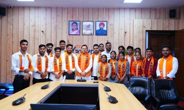 मुख्यमंत्री पुष्कर सिंह धामी से अखिल भारतीय विद्यार्थी परिषद के देहरादून जनपद के विभिन्न महाविद्यालयों के विजयी प्रत्याशियों ने मुख्यमंत्री आवास में भेंट की।